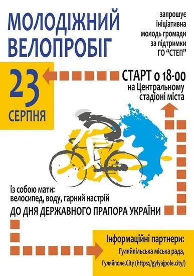 Цього ж дня о 18:00 біля центрального стадіону міста стартує молодіжний велопробіг, долучитись до якого можуть всі бажаючі. Під час велопробігу організатори планують провести флешмоб з Державним Прапором України.