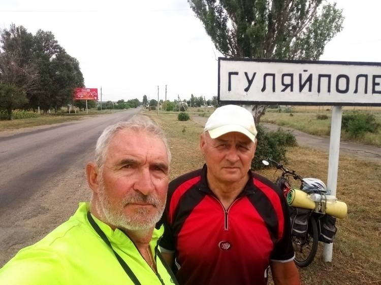 І ось нещодавно до Гуляйполя завітав «Видатний мандрівник України», майстер спорту та чемпіон України зі спортивного велотуризму, срібний призер чемпіонатів СРСР та СНД, старший інструктор-тренер з велотуризму, суддя національної категорії, керівник велотурклубу «Меридіан», фотохудожник криворіжанин Яків Волков зі своїм земляком, колишнім працівником «Криворіжсталі», а нині пенсіонером Сергієм Апанасенком.