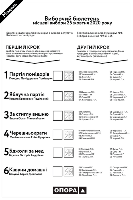 Виборець може голосувати лише за одну організацію партії, одного кандидата в депутати.
